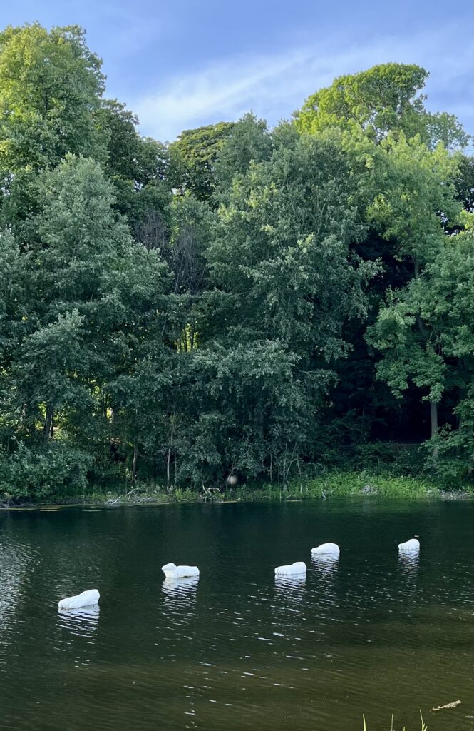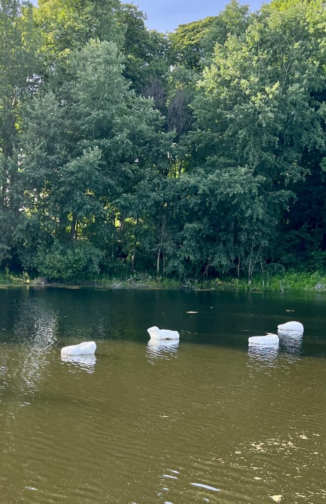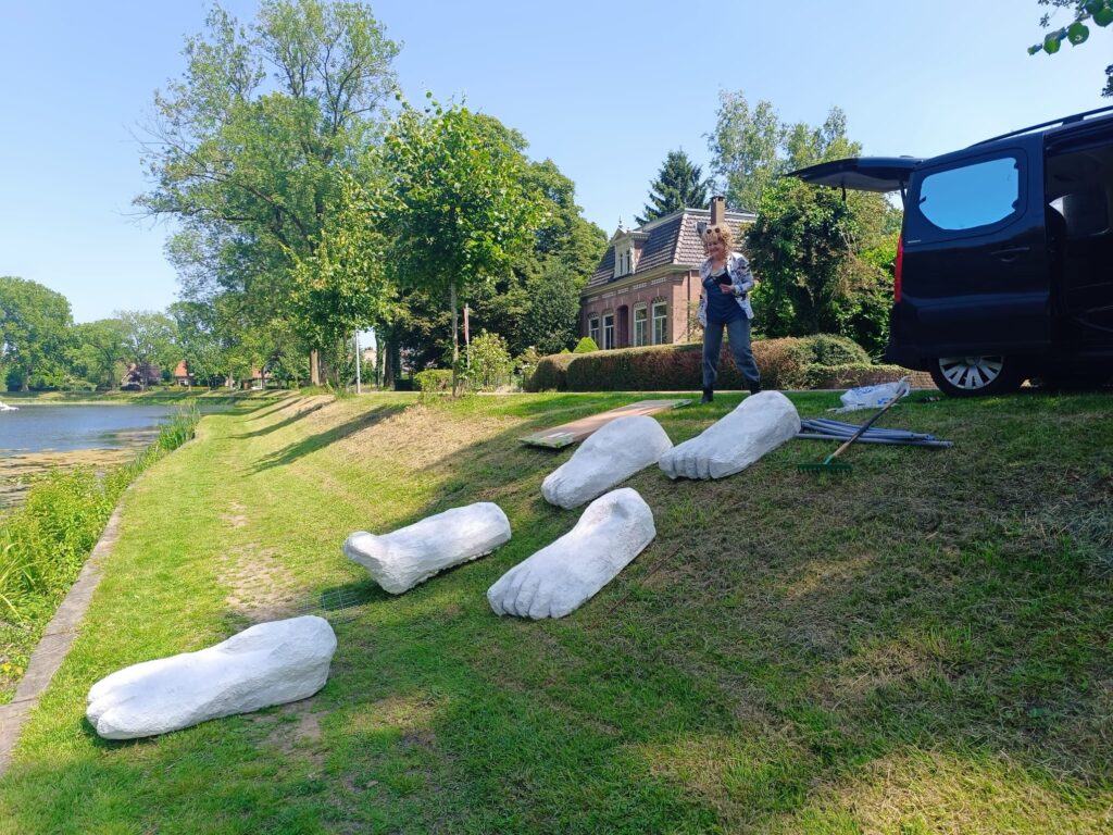 Drijvende installatie Reuzenstappen in opdracht voor Pracht in de Gracht. Locatie: Virieussingel Zaltbommel. Kunstroute zomer 2025.